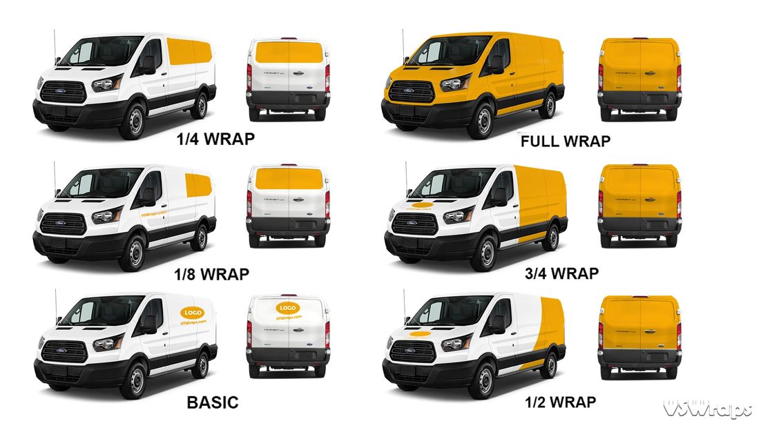 Full wraps pertains to a complete vehicle in which bumpers, roof, mirrors, handles and spoilers are an option.
